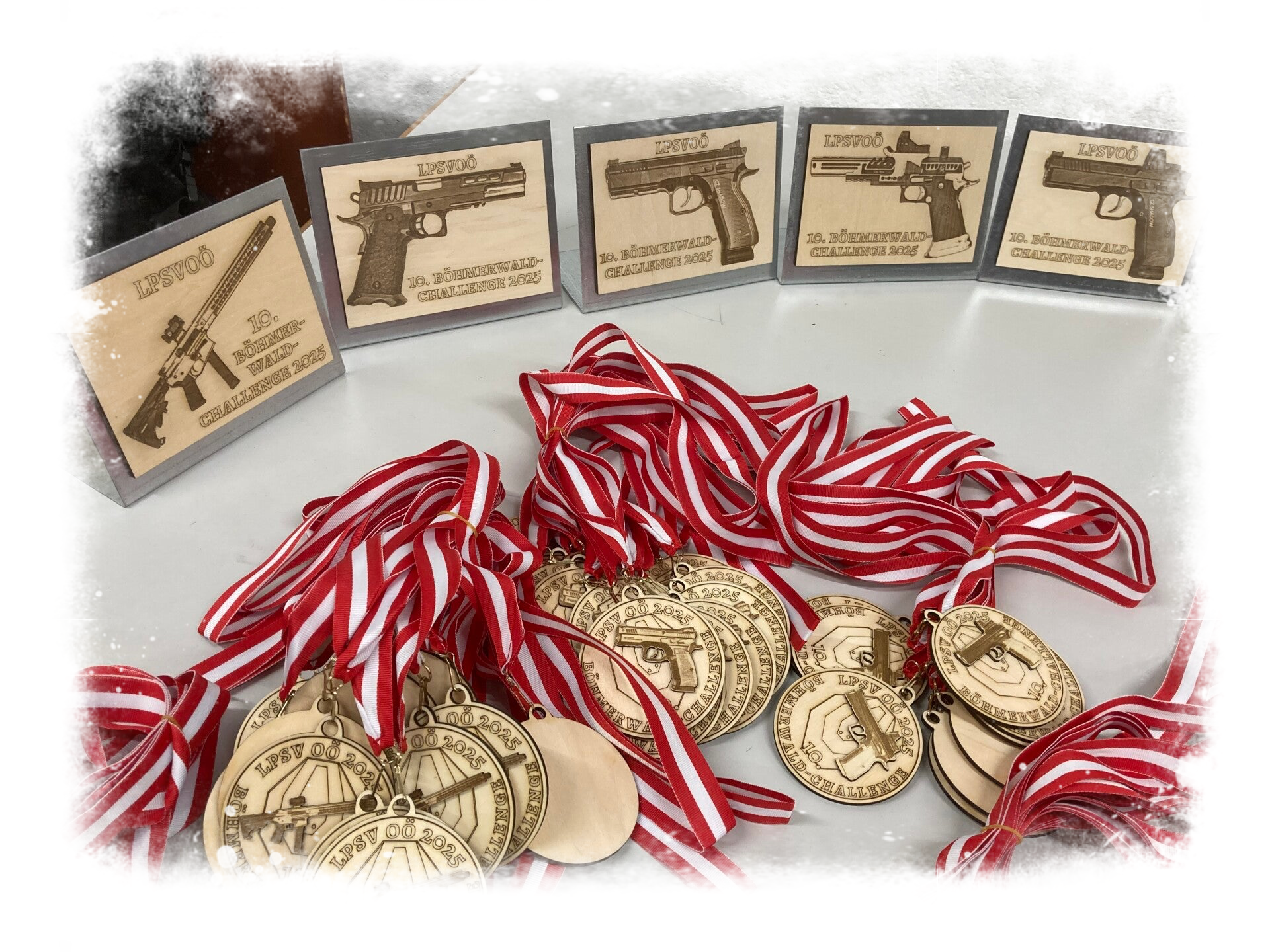 Baumscheiben, Türkränze, Getränkeuntersetzer, Jausenbretter, Schnapsbankerl, Schieferplatten, Holzboxen, Medaillen